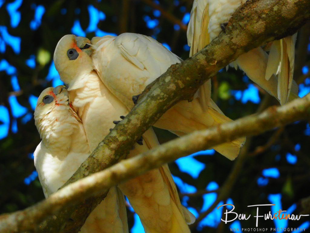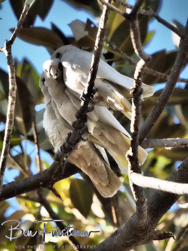 With the breeding season in full swing, the western shoreline turned into parrot bonanza. Not only in bright white feature gown.