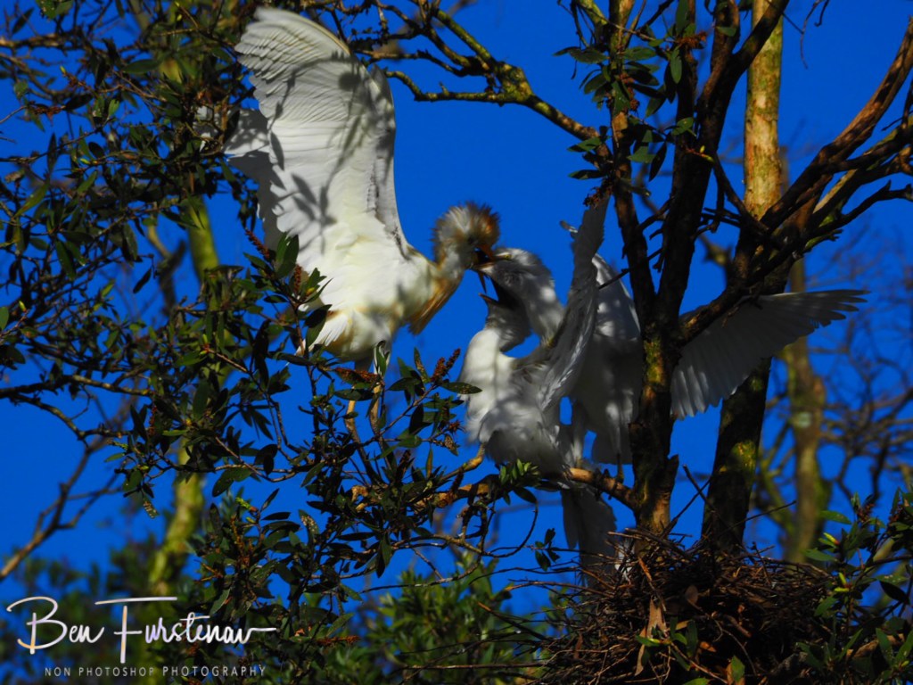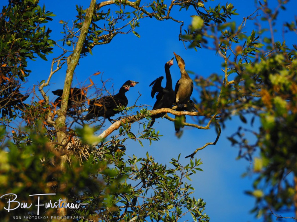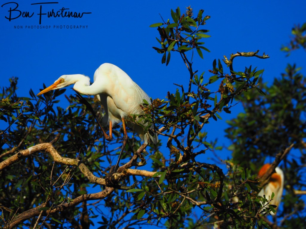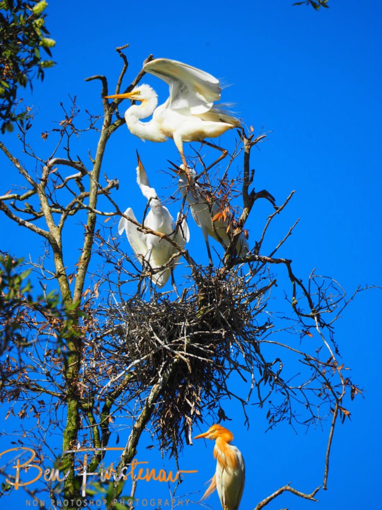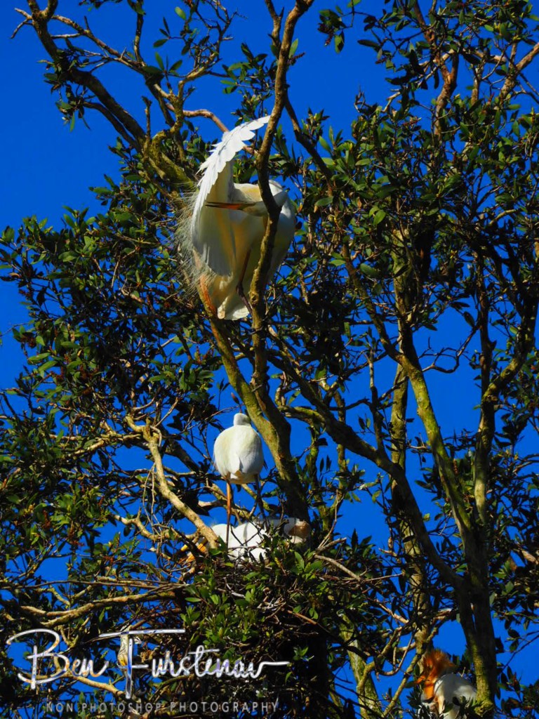 Birds that didn’t acquire a nesting spot on the island retreats took shelter in scrubburbia. Trees on the mainland were feathered with nesting sites just as well.