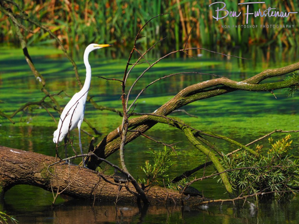 Social distancing was imposed by a neck-length. This is a different but just as popular waterlogged branch, which almost reaches the mainland shoreline.