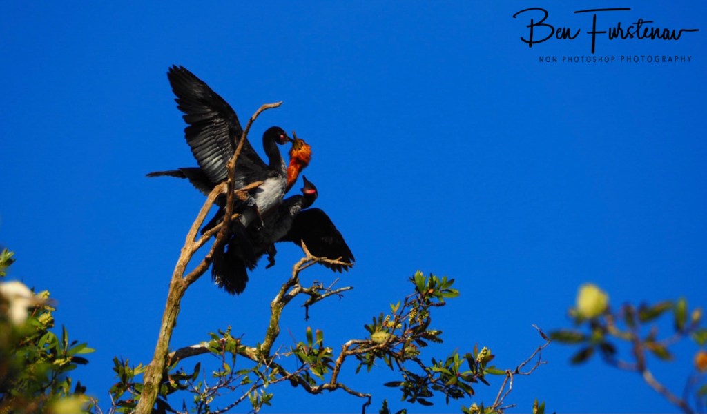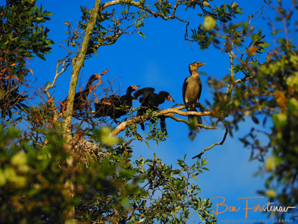 A few black cormorants dared to mingle within the nesting jungle but were outnumbered by black dots in the treetops.