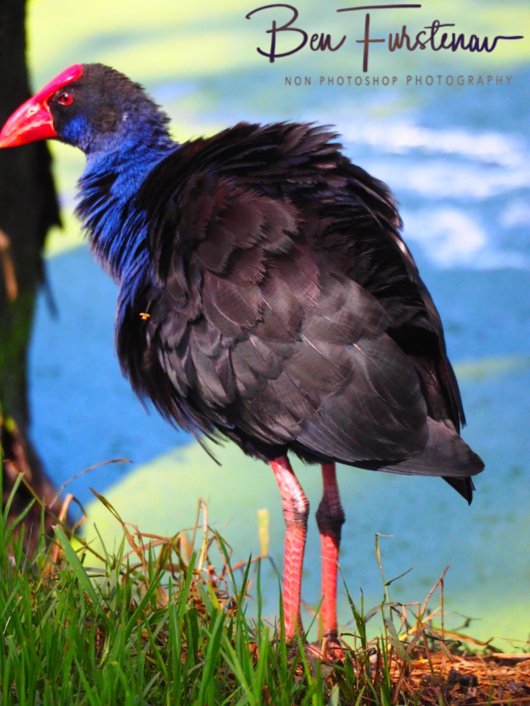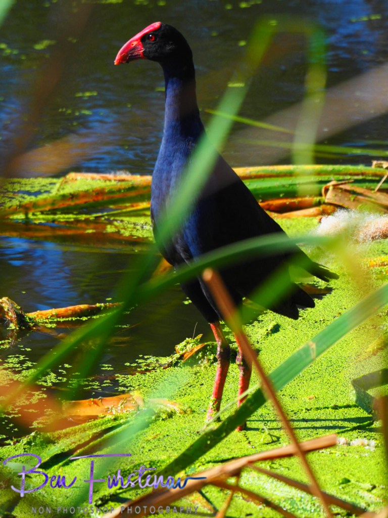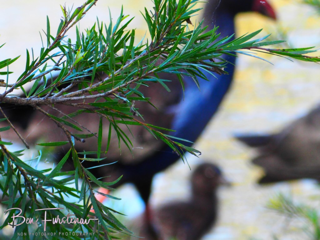 If possible danger approaches, swamphen chicks are hidden amongst the high grass, whilst adult birds indicate a distraction manoeuvre.