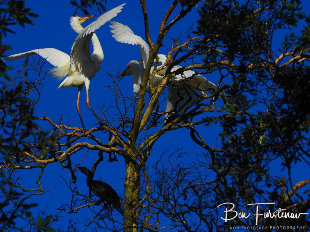 Great White Egrets and Intermediate Egrets form monogamous reproductive pairs during each breeding season.