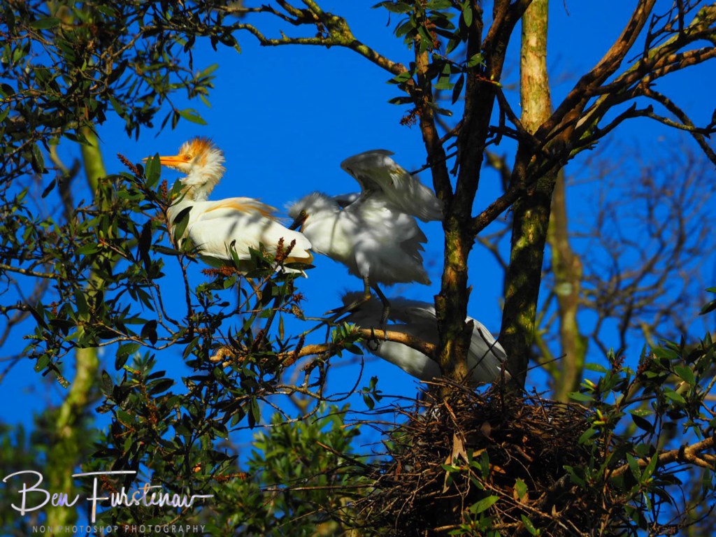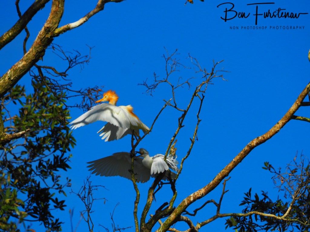 Cattle Egrets create an orange buff-plume on their back, breast and crown during the breeding period.