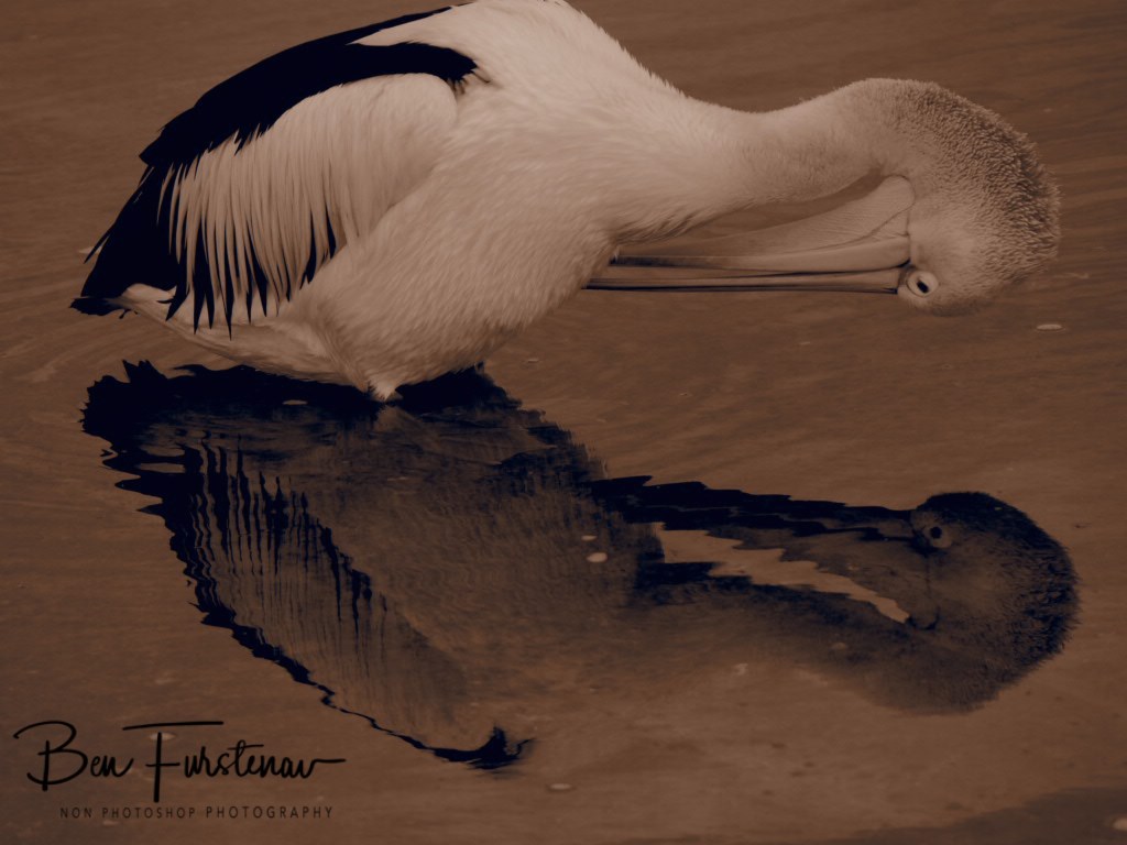 A pelican’s cleaning procedure is lengthy and thorough.